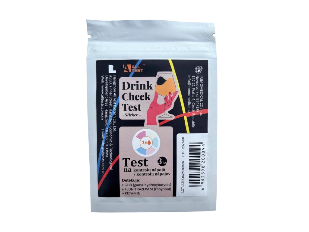 - Tento produkt testuje pouze na GHB, ketamin a rohypnol (FLZ).