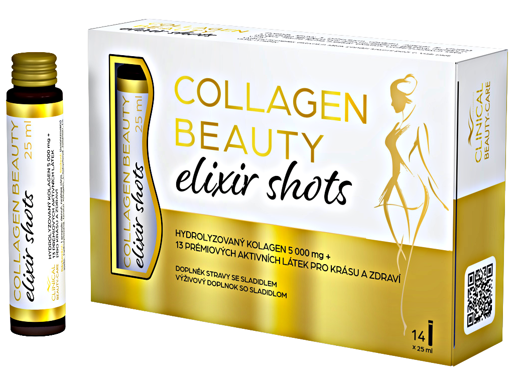 Složení: Deionizovaná voda, hydrolyzovaný hovězí kolagen, L-askorbová (vitamín C), Vitis vinifera (extrakt ze semen révy vinné), Niacin (vitamin B3), Hyaluronát sodný (kyselina hyaluronová), Vitamin E, Glukonát zinečnatý (zinek), kyselina pantothenová (vitamin B5), Pyridoxin (vitamin B6), Riboflavin (vitamin B2), Retinyl acetát (vitamin A), Seleničitan sodný (selen), D-biotin (biotin), Kobalamin (vitamin B12), konzervant: (sorban draselný, benzoan sodný), sladidlo: (sukralóza), regulátor kyselosti: (kyselina citronová), aroma.