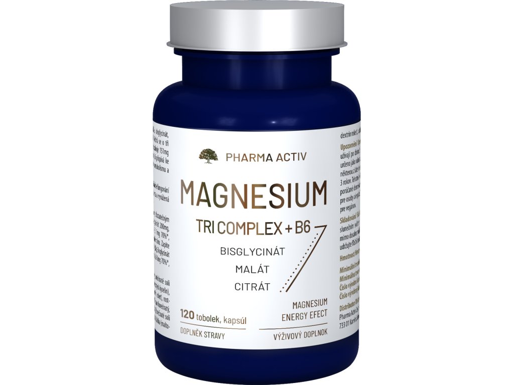 Trojkombinácia vysoko biodostupného a vstrebateľného horčíka bisglycinát, malát citrát je obľúbená u športovcov a vo fyzických profesiách. Ide o tri formy organicky viazaného horčíka. Magnesium Tri Complex obsahuje 151 mg elementárneho horčíka v kapsule. Horčík spoločne s vitamínom B6 prispieva k zníženiu miery únavy a vyčerpania, k normálnemu energetickému metabolizmu a normálnej činnosti nervovej sústavy a psychickej činnosti.